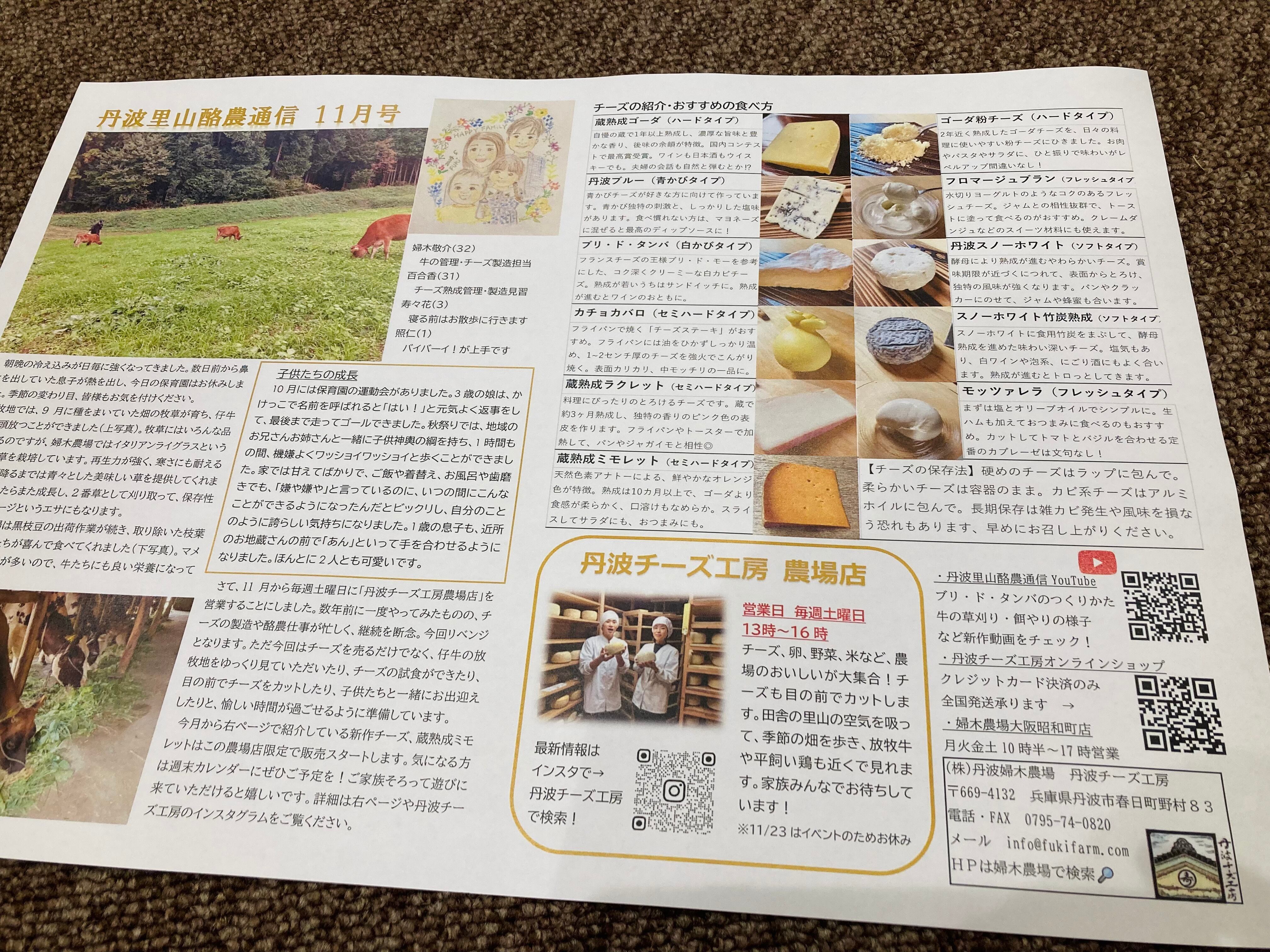 最新の農場ニュースやチーズの紹介、食べ方の提案をまとめたリーフレットを1部同封します。